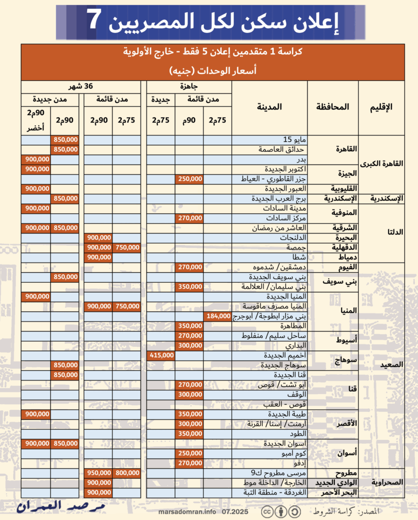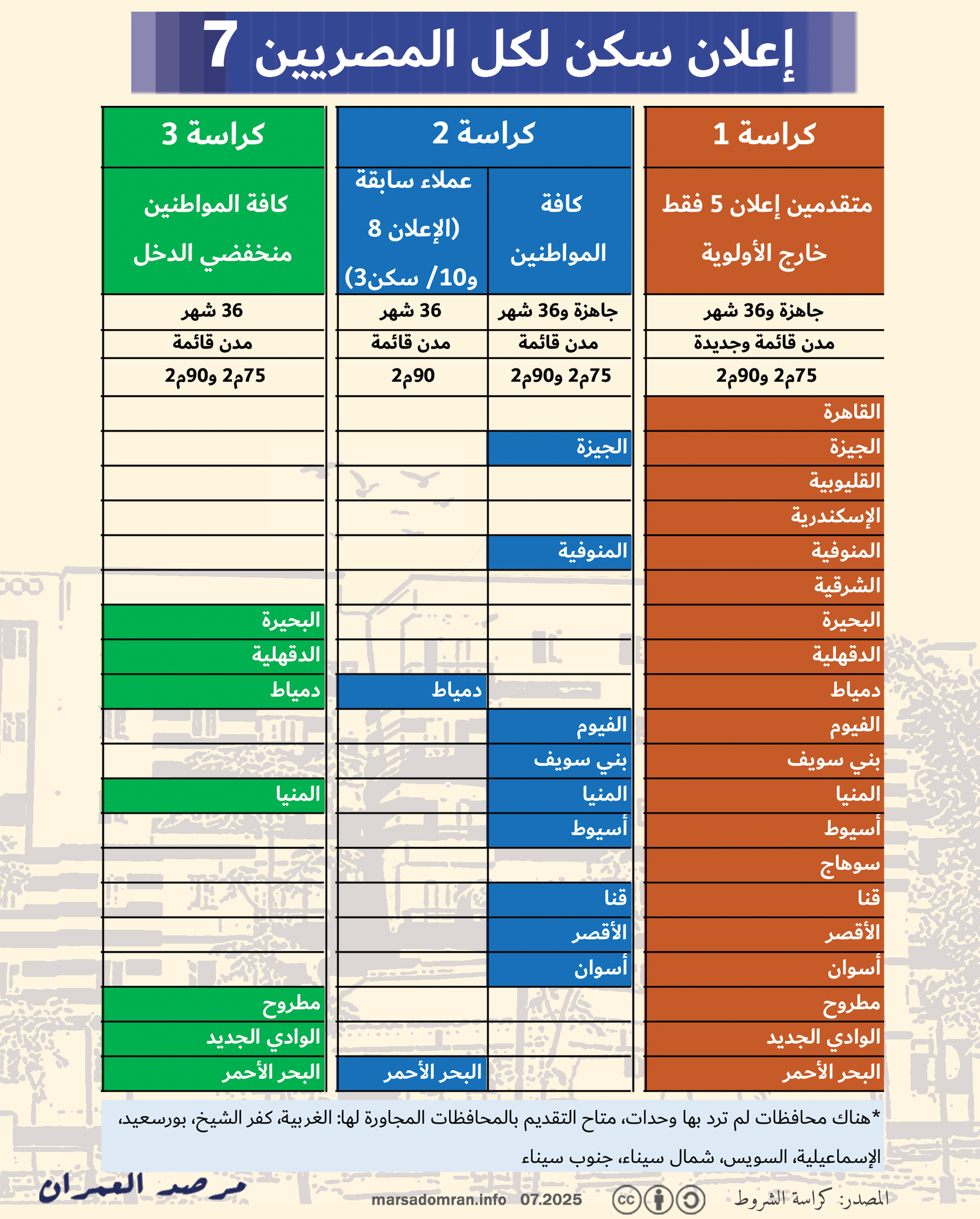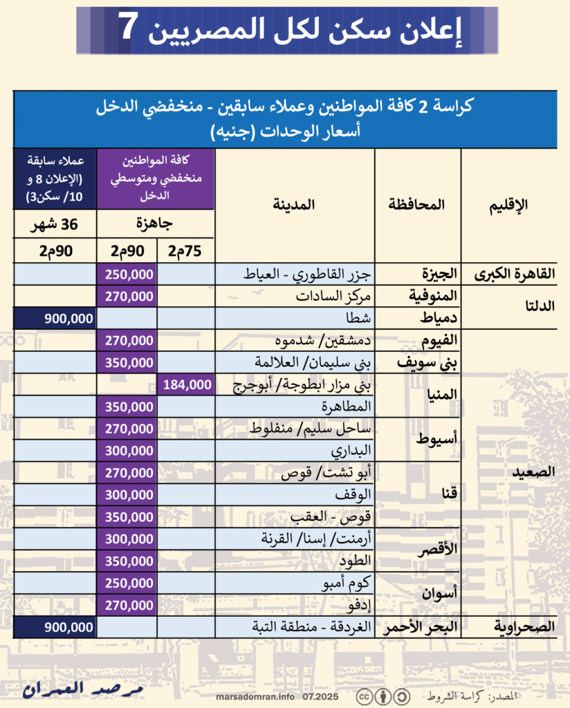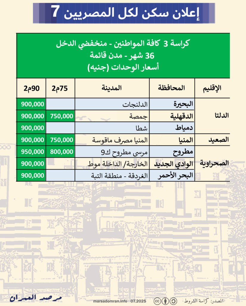 مع طرح إعلان “سكن لكل المصريين 7 ” (الإسكان الاجتماعي سابقًا)، ينشر مرصد العمران دليله عن كيفية الإختيار بين كراسات الإعلان الثلاثة.