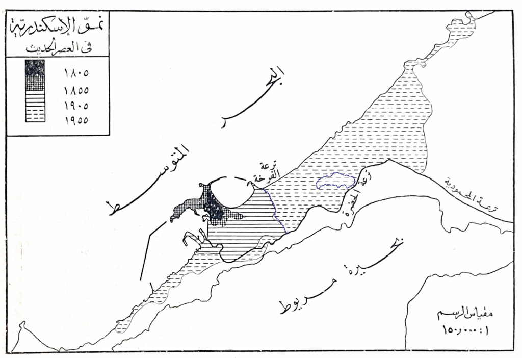 Figure 1: Alexandria urban expansion between 1805 – 1955. In Alexandria City, by Mohamed Sobhy Abdelhakim, 139. Misr Bookshop, 1958.