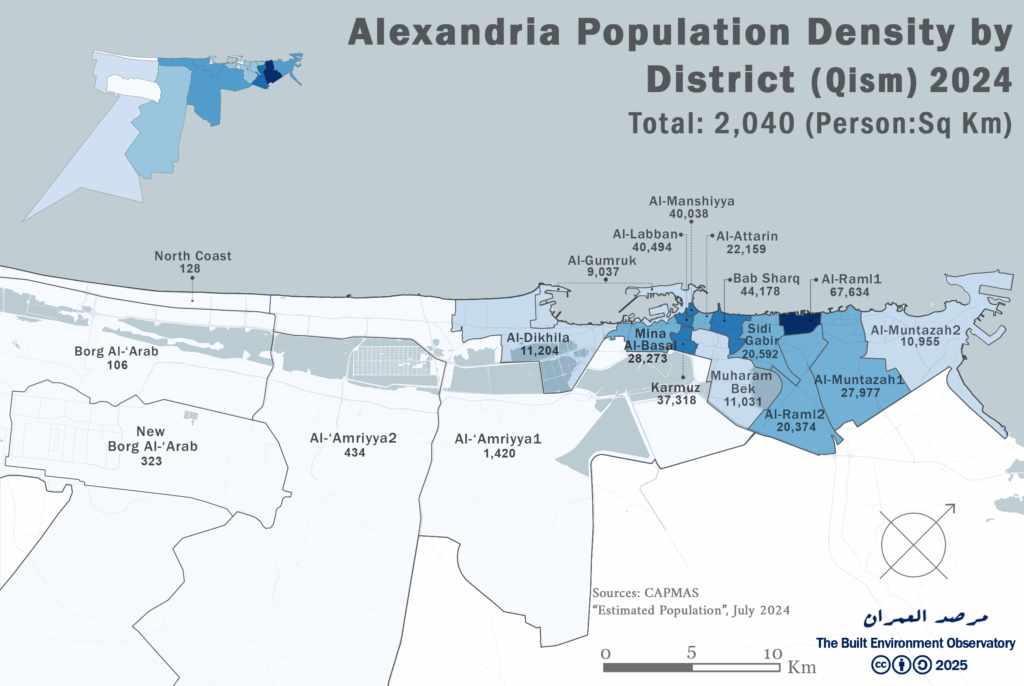 Figure 7: Alexandria population density by qism 2024 (Appendix 4)